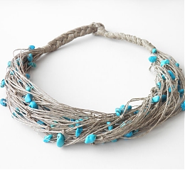 Biżuteria artystyczna z kamieni - bizuteria-artystyczna-z-lnu---turkusy - Ekokoral.pl - biżuteria artystyczna, korale góralskie , biżuteria z korala korale ludowe ,  spinki góralskie
