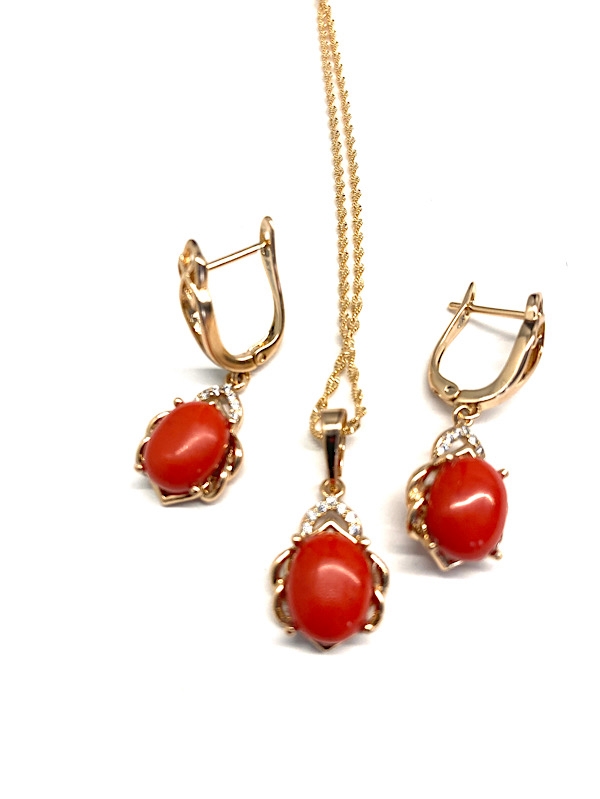 Srednica korala w kolczykach i zawieszce  1 cm x 0,8 cm