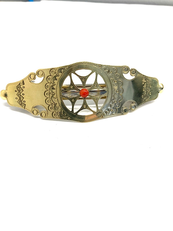 Ozdobę stanowi  rozetka  z osadzonym koralem